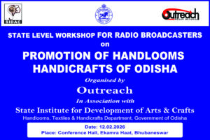 On the occasion of the 12th Bhubaneswar Radio Fair, Outreach, in association with the State Institute for Development of Art & Crafts (SIDAC) and the Handlooms, Textiles and Handicrafts Department, Government of Odisha, is organizing a one-day workshop on “Promotion of Handloom & Handicrafts” for Radio Broadcasters of Odisha.